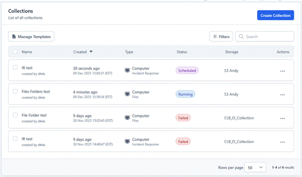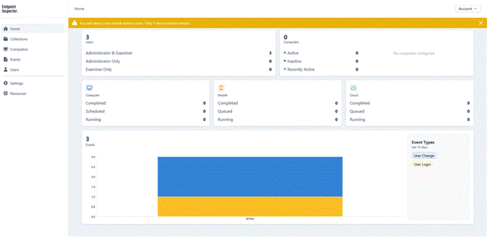 Once installed, the agent runs in the background, allowing you to monitor from the dashboard whether devices are active, inactive (more than 24 hours) or recently active (within the last 24 hours). When a Collection is running, it is quite discreet, with no notifications or popups for the user. While conducting an extraction of a computer on a wireless connection, I detected no impact while I was concurrently streaming a YouTube video. A user would have to be closely monitoring their network traffic, memory or CPU levels to detect anything occurring in the background.