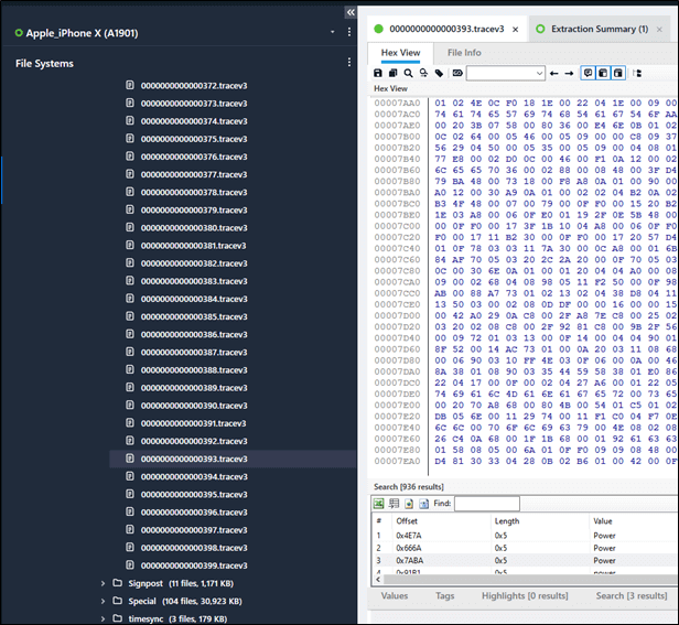 In Physical Analyzer, a physical (Hex search) for terms like “power” or “system” will also lead you down the correct path, but it’s not as easy.