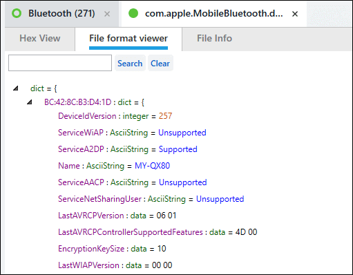 This question should bring you to the Bluetooth Devices and connections. Manual review would bring you to com.apple.mobilebluetooth.devices.plist.