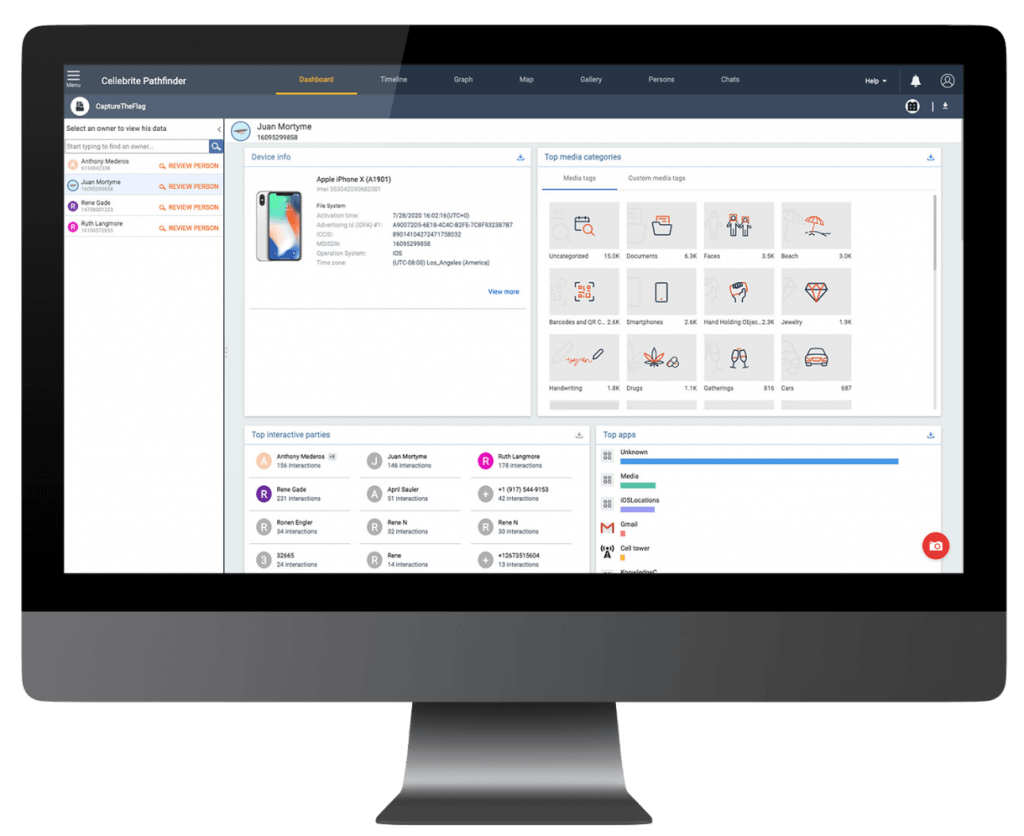 Cellebrite Pathfinder Dashboard with Image Classification – Source: Cellebrite