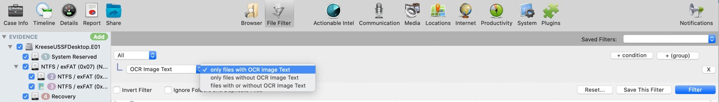 Upon adding your evidence using Cellebrite Inspector 10.2, you can choose to process OCR. This converts recognized text data from PDFs, photos, and scanned documents, allowing it to be queried by index search or content search with the selected deep search option. In addition, you can filter for entries with OCR image text within the file filter view.