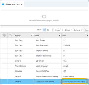 The Device Info tab in PA Ultra parses the last restore from backup.