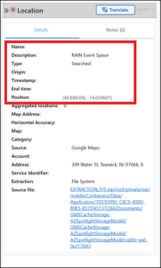 Now that we have the coordinates for the RAIN Event Space, we can search for those coordinates in the Vehicle Parked portion of the Locations model, which returns the answer.