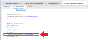 Opening the file in PA and scrolling down to the entry “CurrentStatusText” finds the value “World peace” with an accompanying emoji.