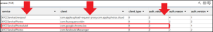 The table of interest here is access. Filtering by any value that contains “photos” narrows the amount of data we need to examine.