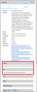 This team really liked using the app What3Words to find and send location information, so we know that is likely candidate. With that in mind there are a couple of ways to approach this question. The first is by using email. Searching for “what3words” returns three (3) email messages from What3Words that contains the email address j9by422yjc@privaterelay.appleid.com. This email address is part of Apple’s Hide My Email feature, which uses anonymized email addresses when signing up for online services.