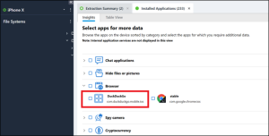 This one may have taken a bit of time. After reviewing all the parsed search history and striking out, it’s time to see what other applications are installed on Abe’s phone that may have allowed him to search. It is here we find Duck Duck Go.