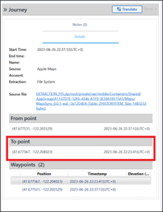 Just beyond this view we find an entry for a snapshot at 22:33:24 which has the answer. It is found in EXTRACTION_FFS.zip/root/private/var/mobile/Containers/Data/Application/704312FF-8D41-4943-B907-47BF573BB88C/Library/SplashBoard/Snapshots/sceneID:com.apple.Maps-2ED10C52-C511-4BEF-91D2-EF9372D8B5C4/.