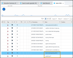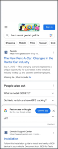 Think about the easiest way to search for something an iPhone. Often this will be Safari. Within PA Ultra go to Analyzed Data and then Search & Web and Searched Items. Under Safari, you will find search hits related to a Hertz rental car and the device, which is the answer. Both are accepted.