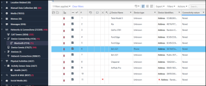 Under Analyzed Data > Networks & Connections > Device Connectivity > Bluetooth you will find several results. Filter the results on Paired under the column Connectivity nature. The answer is 10, not 11 since there are 2 which are the same (Ed’s S21).