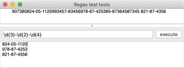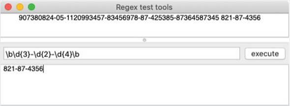 The regular expression used to find a basic U.S. phone number pattern with dash separators (XXX-XXX-XXXX) is nearly identical to the one used to locate Social Security numbers; making one small adjustment, the search function looks for three numbers after the first dash instead of two. Any of the following regular expressions would work: