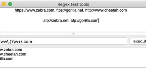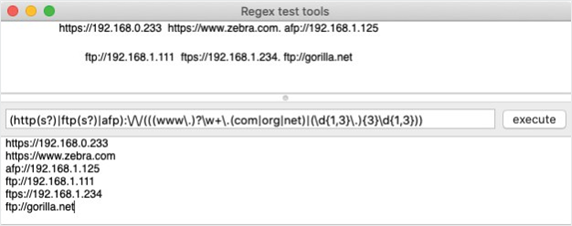 This regular expression finds ‘https://192.168.0.233’, ‘https://www.zebra.com,’ ‘afp://192.168.1.125‘, ‘ftp://192.168.1.111’, ftps://192.168.1.234, and ftp://gorilla.net.