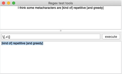 - Greedy characters: The ‘*’ and ‘+’ repetition characters are greedy by default! Left to their own devices, they match as many character or pattern matches as their character definition allows. To ‘limit’ these characters, follow them with a ‘?’. This quells their greed, and politely asks the search function to match the fewest number of character or pattern matches a character definition allows. This concept will be demonstrated in the Finding Simple Word and Phrase Pattern Matches example.