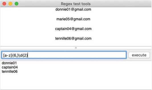 Another way to provide a variation is to search for email address from two domain names. For example, a user may have a zebra email address and a tiger email address. The following regular expression will locate email address patterns with the zebra.com or tiger.com domain names and .com top-level domain: \w+@(zebra|tiger)\.com
