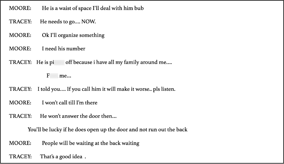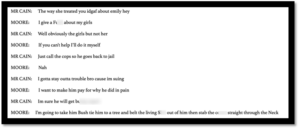 In another social media message Paul sent to a friend, he wrote about James that he would “Belt the living s*** out of him then stab straight through the neck.”