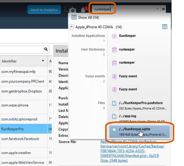 What we need to do now is conduct a quick keyword search for RunKeeper and find the database file. These databases add so much value to your investigation.
