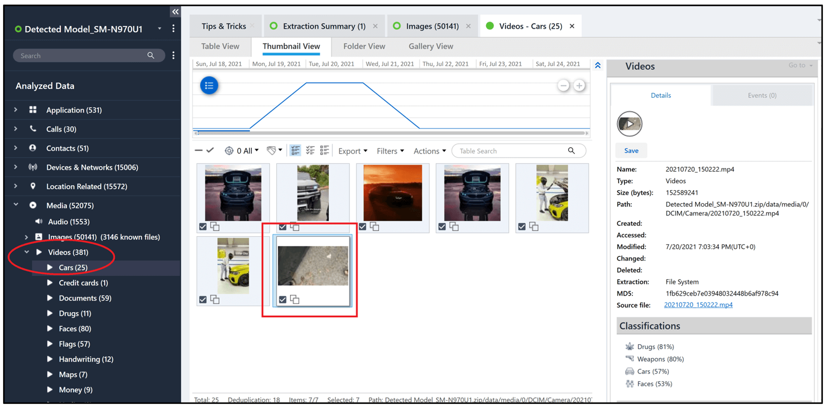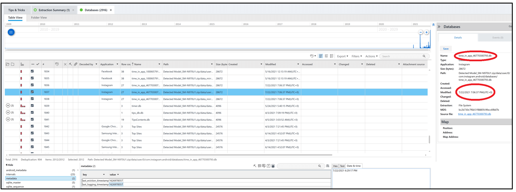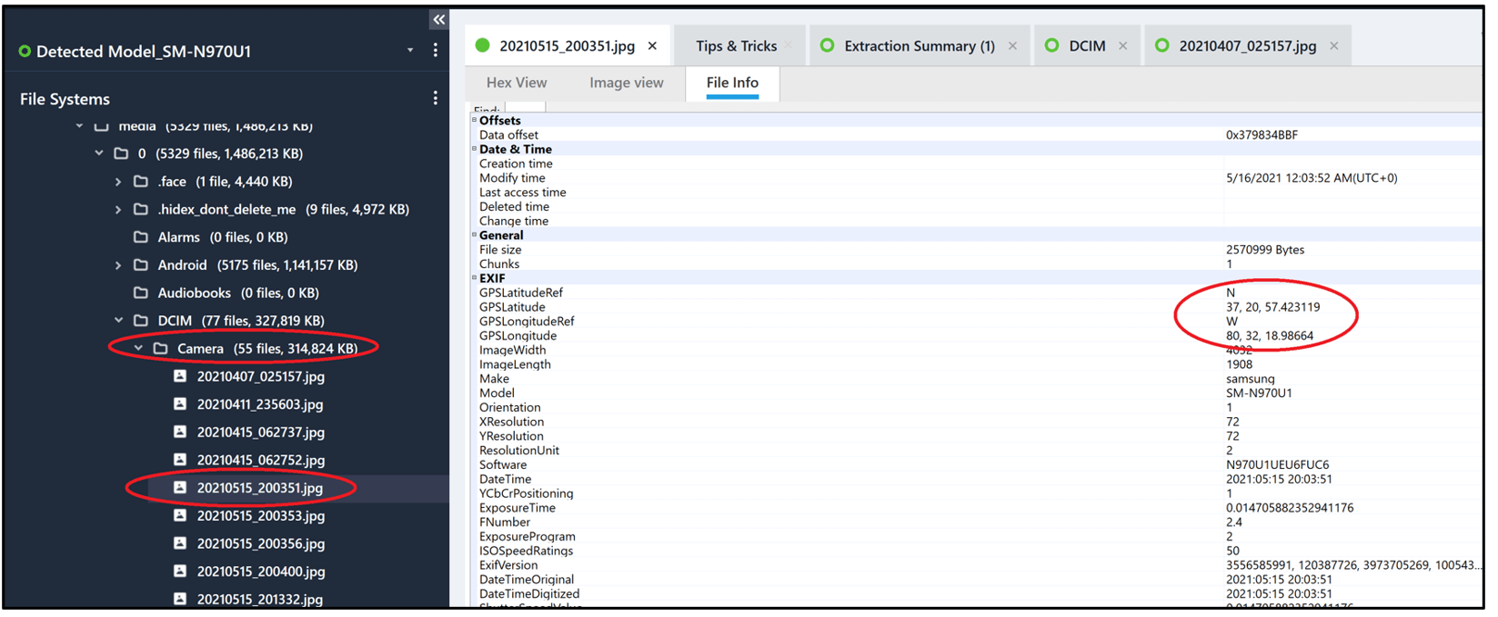 A Hex search in Physical Analyzer is helpful for this question. We searched for “2623237359273252101” and the results are shown below. Hex searches can be tedious, so make sure you make the search as specific as possible.