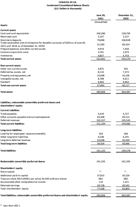 PETAH TIKVA, ISRAEL, August 12, 2021 — Cellebrite, the global leader in Digital Intelligence (“DI”) solutions for the public and private sectors, today announced financial results for the three months ended June 30, 2021.
