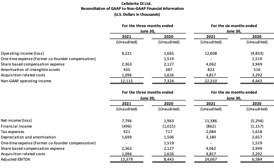 This press release includes non-GAAP financial measures. Cellebrite believes that the use of non-GAAP operating income (loss) and Adjusted EBITDA is helpful to investors. These measures, which the Company refers to as our non-GAAP financial measures, are not prepared in accordance with GAAP.