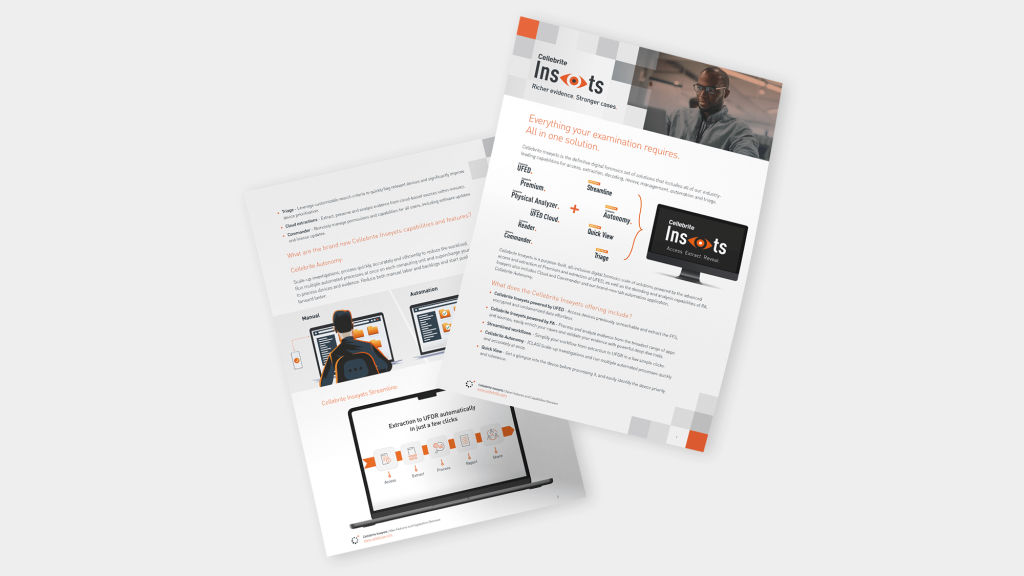 Utilisez ces ressources pour mieux comprendre Cellebrite Inseyets, ses fonctionnalités avancées et la façon dont cette solution peut rationaliser vos enquêtes numériques et accélérer la résolution des affaires.